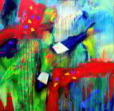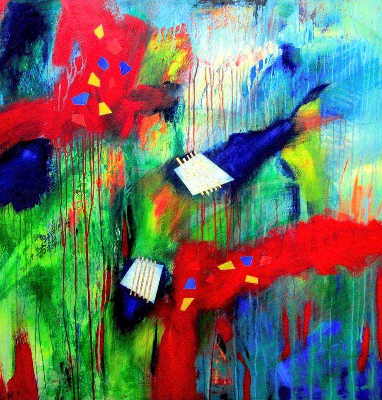 Living with English Pointer dog Phoebe and two demanding felines in Hope, Nelson, Adrienne still manages to make time for enjoying the beautiful Nelson outdoors, something that provides her with many great photographic images to use in her art. Having been a successful painter for many years, she now works mostly in a combination of mixed media and acrylic paint.